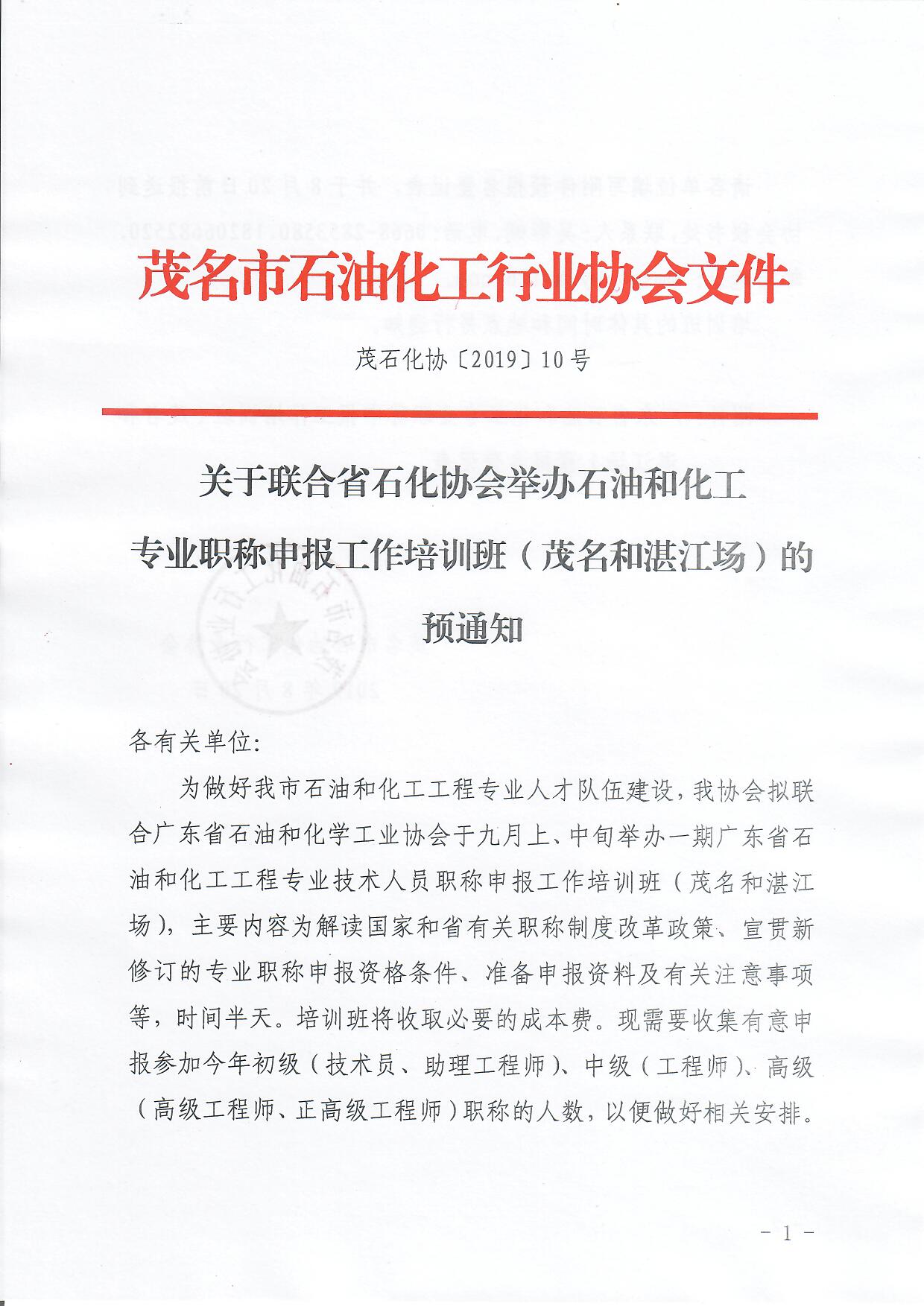 【茂石化協(xié)〔2025〕3號】關(guān)于舉辦2024年度市化工輕工環(huán)保中(初)級專業(yè)職稱評定申報(bào)培訓(xùn)班的通知